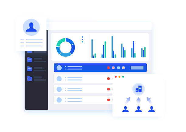 从角色入手,建立只属于该角色相关的工作界面,层级分明 防止泄密, 展示清晰的交互界面,实时的数据反馈,更有可自定义显示相关的订阅板块